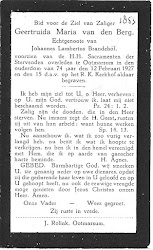 Geertruida Maria van den Berg is overleden op 12 februari 1927 op 74-jarige leeftijd te Ootmarsum