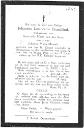 Haar weduwnaar Johannes Lambertus Brandehof overleed op 14 maart 1927 op 71-jarige leeftijd te Ootmarsum