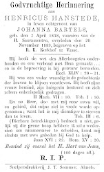 Hendrikus Hansté overleed op 20 november 1889 op 51-jarige leeftijd te Denekamp