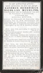Jacobus Hendrikus Nicolaas Muurlink is geboren op 15 september 1853 te Oldemarkt als zoon van Arnoldus Muurlink (33 jaar) en Wilhelmina Boelens (36 jaar).