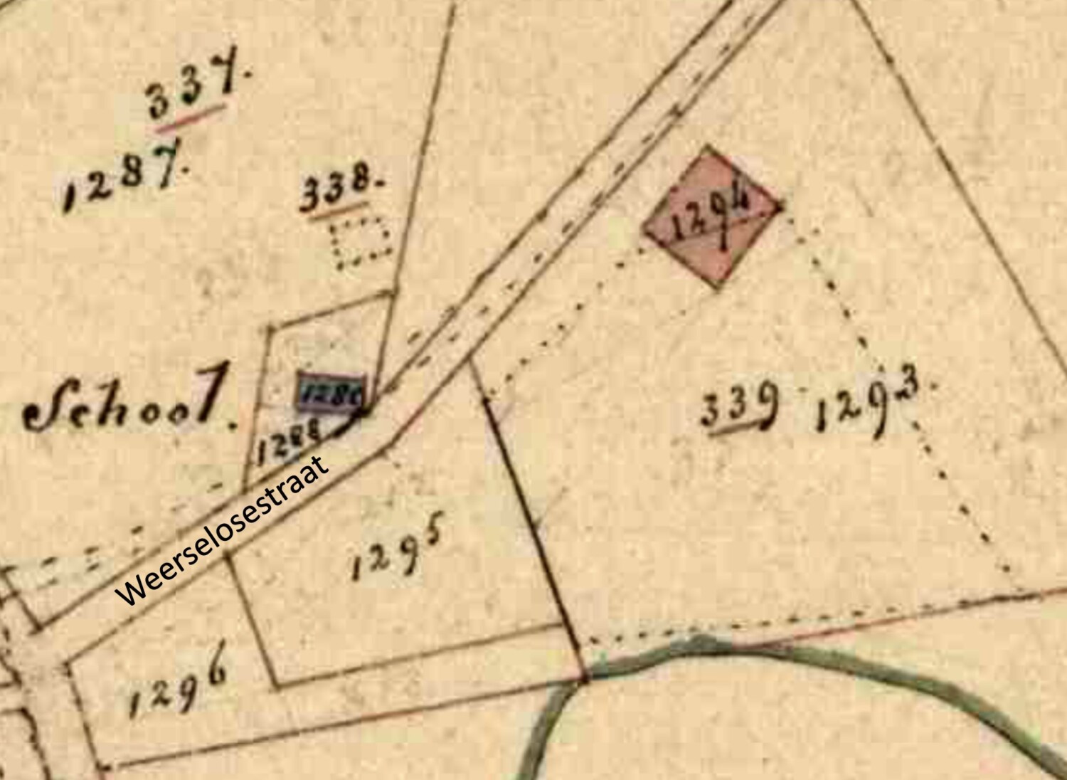 Dertig jaar later voldoet het gebouw niet meer aan de eisen. In 1877 bouwt aannemer B. Keupink uit Ootmarsum aan de overkant van de straat op deze plek voor een bedrag van f 4452,- een nieuwe school, met perceelnummer B1687. In de loop der jaren wijzigt het kadasternummer nog enkele keren. Rond 1899 wordt ernaast een woning voor het schoolhoofd gebouwd. Dat is nu Weerselosestraat 15.
