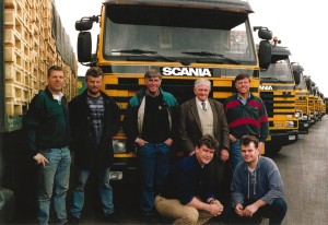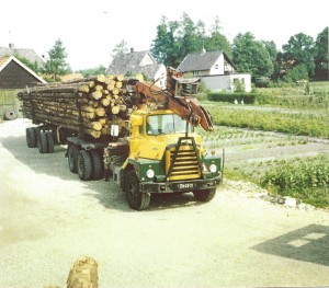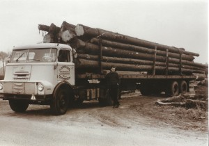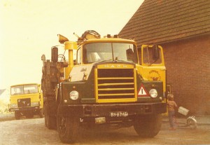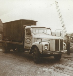 Op de foto een Scania van de Kamphuis Transport, rechts naast truck Gaît Kamphuis (1915-1999), op een Gas-verdeel-station gemaakt door smederij Silderhuis voor Apparatenbouw.