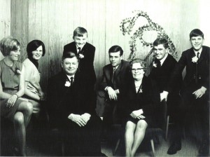 Achter van links naar rechts; Mineke Kamphuis (1944-2020), Marijke Kamphuis (1949-2025), Paul Kamphuis, Henk Kamphuis, Jan Kamphuis en Bennie Kamphuis.