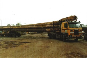 De truck met hierop de boomstammen staan klaar om weggebracht te worden.