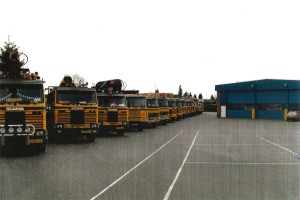 Op het terrein aan de Laagsestraat staan de vrachtwagens opgesteld.