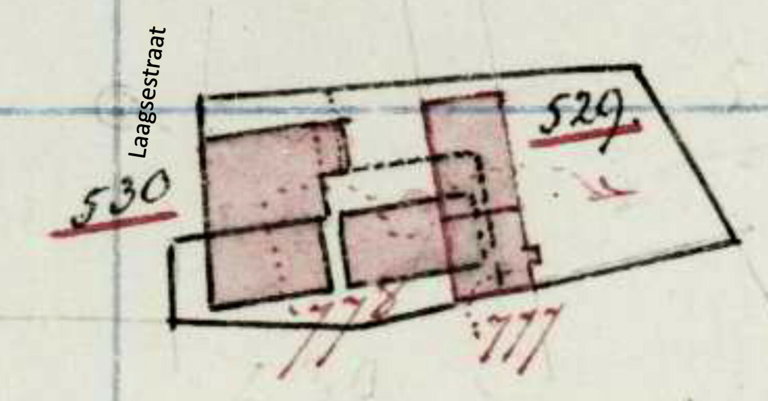 Hier stond twee eeuwen geleden de woning met het kadastrale nummer D530 van de bleeker Adolphus Rientjes (1760-1844). Hij was in 1794 getrouwd met Euphemia Vollenbroek (1771-1838) uit Dulder. Het echtpaar kreeg 8 kinderen. Links van de woning lag een gaardengrond (D528) die zeer waarschijnlijk als bleekgrond werd gebruikt, net als de daarachter liggende gaardengronden.
