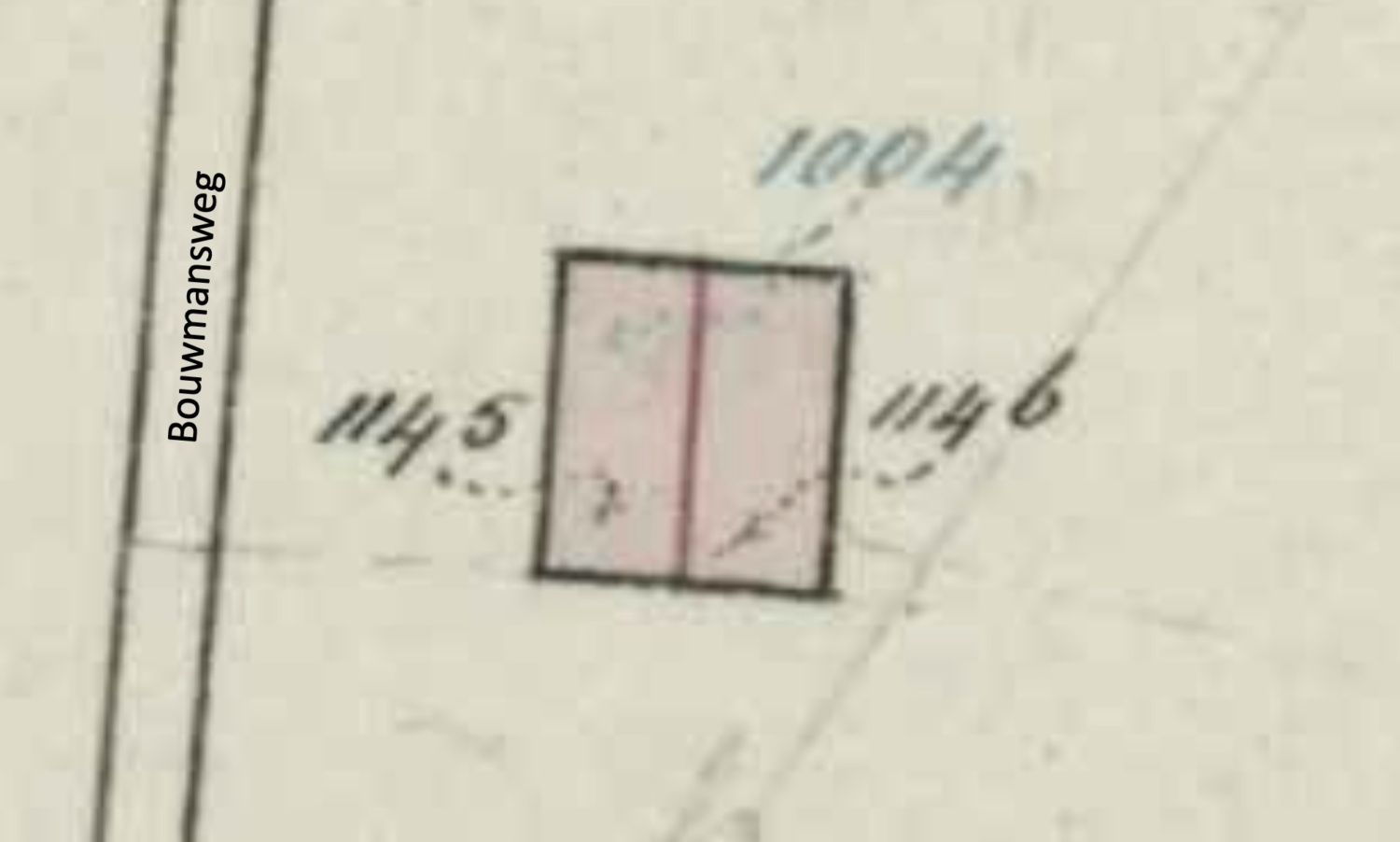 In 1881 werd de woning gesplitst in twee gedeelten van elk 110 m2 en kregen de kadastrale nummers D1145 en D1146. Twee jaar later werd de splitsing weer ongedaan gemaakt en werd het D1163.