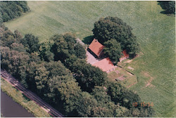 Luchtfoto van de vroegere boerderij Erve Pandoer van de familie Thebelt aan het kanaal Almelo-Nordhorn.