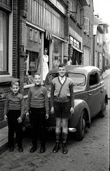 De broertjes Meijer voor de kruidenierswinkel van hun ouders, waar zij een kruidenierswinkel van de VIVO hadden in het pand aan de Grotestraat waar later elektrozaak en installatiebedrijf Ben Lammerink was.