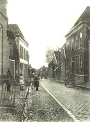 De Grotestraat met spelende kinderen, op de achtergrond is het pand van Vos nog goed te zien. Dat pand verdween in 1957 voor de doorbraak naar de Wal.