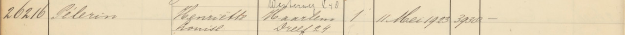 | Wilhelmina Parmentier | 8 december 1919 | Ootmarsum | dochter | ingeschreven op 29 december 1919 vanuit Oestgeest vertrokken op 1 juni 1920 naar Alkmaar ambthalve |