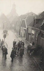 Zeer oude foto van de Schilstraat. De gevels waren toen nog van hout! In het midden de Markt met de winkel van Olde Daalhuis.