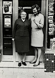 Annie Reinders en haar moeder Mina Reinders-Meijerink (1903-1989) voor hun winkel.