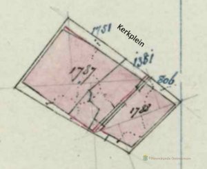 Het pand links was in 1832 eigendom van bakker Wener Andreas van Weerselo (1756-1835), getrouwd met Berendina Wilken (1762-1844). In 1843 wordt het pand verkocht in twee gedeelten. Het rechterdeel is 110 m2 groot en gaat naar Albertus Josephus Sloetken (1803-1856) en krijgt het kadastrale nummer A1380. Het linkerdeel is kleiner, 86 m2 en krijgt het kadastrale nummer A1381. Het wordt het eigendom van de wieldraaijer Gerhardus Tenniglo (1801-1873), een verre neef van de Slutkens (zijn vader was Henricus Slutken (1764-1842)). Gerardus woonde met zijn gezin op het Kerkplein 22.