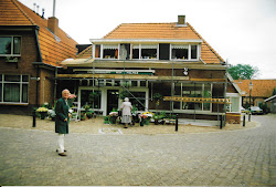 Schuur Veldboer met frite-automaat. Achter: meisjesschool.