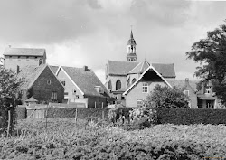 Midden pand kolenboer Jan Weustink (“Koln Jan”), rechts voor schuur pand Kotters Marie (eigenaar Pim Silderhuis), Links de dakgoot van de brandweerkazerne, doorkijk woonhuis Quaink (Oostwal)