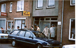 De paolskearls gaan door het Café Steinmeijer en nemen een borrel, achter de bar Johan Steinmeijer (1915-2007) en Harry Steinmeijer