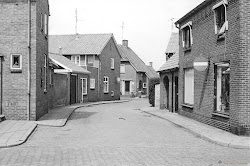 Molendwarsstraat gezien vanuit de Westwal. Links Gerrit Sleiderink (1917-1999), rechts woning/slagerswinkel Frans Heisterkamp (1906-1981).