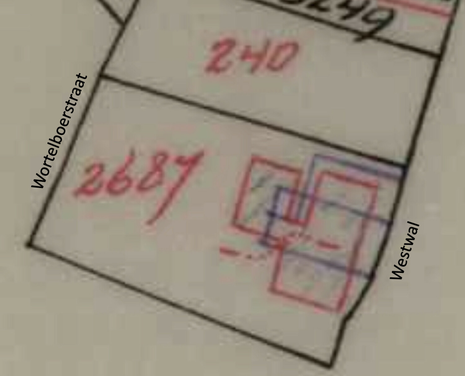 In 1943 worden de drie percelen samengevoegd tot een dubbel woonhuis met het kadastrale nummer A2687.