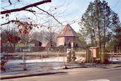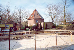 Bouwterrein aan de Molenstraat waarop de familie Bökkers twee huizen bouwt. Achter staat de voormalige molen/woonhuis Bökkers waar in 2003 Monique Veelers woont.