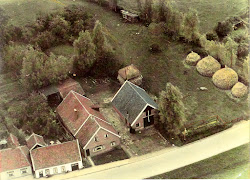 Luchtopname van een deel van de Almelosestraat met boerderij Tenniglo. Boerderij Tenniglo wordt “de Koffiekan” genoemd omdat zij vroeger een cafeetje erbij hadden. De boerderij werd in 1980 afgebroken en het bedrijf werd verplaatst naar de Steenmatenweg. Op deze locatie werden woningen gebouwd.