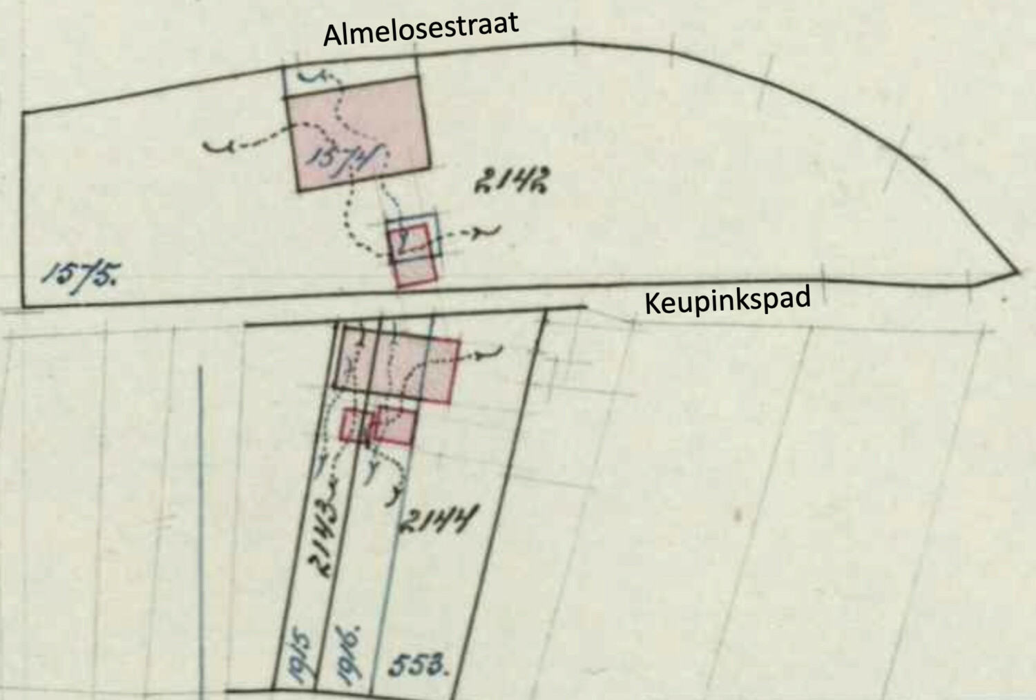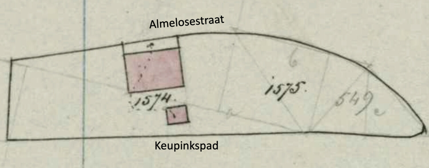 Het Gasthuis van de Stad Ootmarsum was eigenaar van het weiland dat hier lag. Het had het kadastrale nummer A549 en had een oppervlak van 3500 m2.