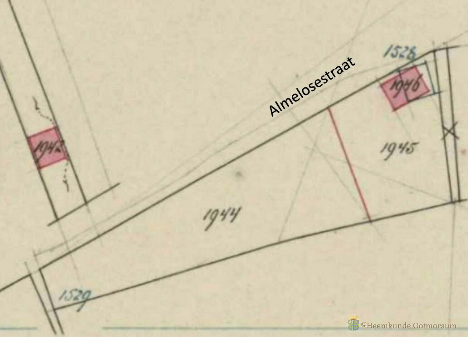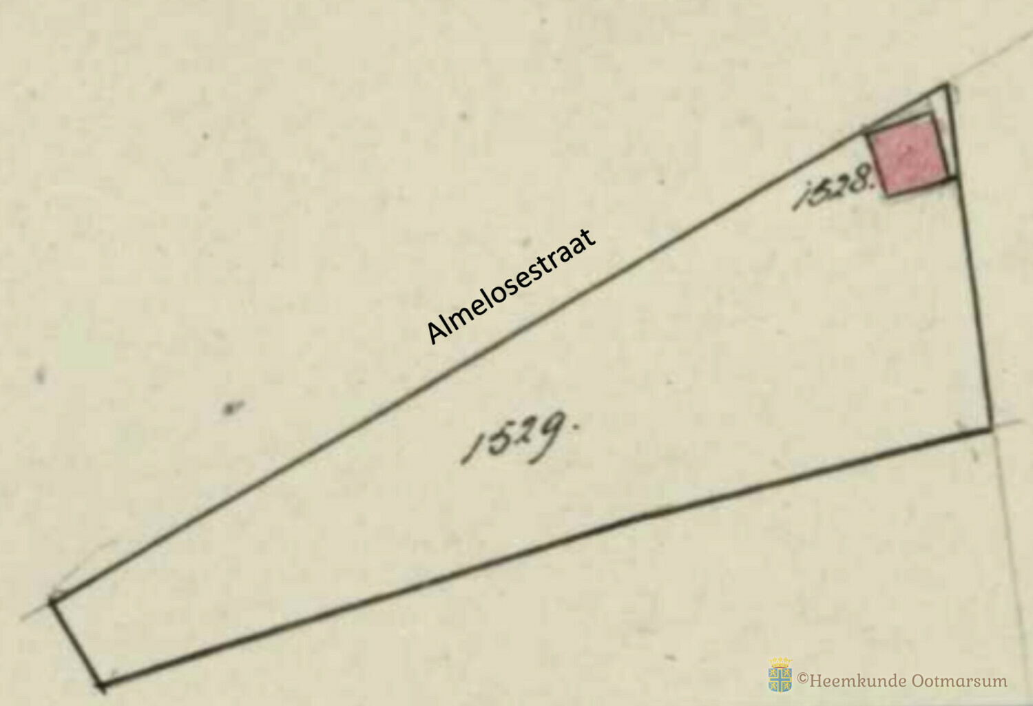 200 jaar geleden was er nog weinig bebouwing aan de Almelosestraat. Op deze plaats lag toen een groot stuk bouwland van 3360 m2 en was eigendom van de winkelier Gerhardus Meijer (1754-1845). Het had het kadastrale nummer A544. In 1845 kreeg het perceel het nieuwe nummer A1407 (waarschijnlijk ten behoeve van een toegangsweg aan de zuid-west kant). Tegenwoordig staan op dit perceel de huisnummers 49a, 51, 53, 55, 57 en 59, waarbij nr. 51/53 de eerst gebouwde woning was.