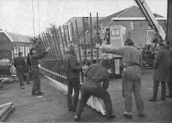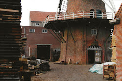 Molen Oude Hengel. Achter: graansilo. Vóór: bouw nieuwe schuur.