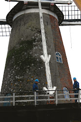 Restauratie wieken molen Oude Hengel. Molenaars Jan Voorhuis (1873-1955) en Gerard Oude Hengel (1908-1980)