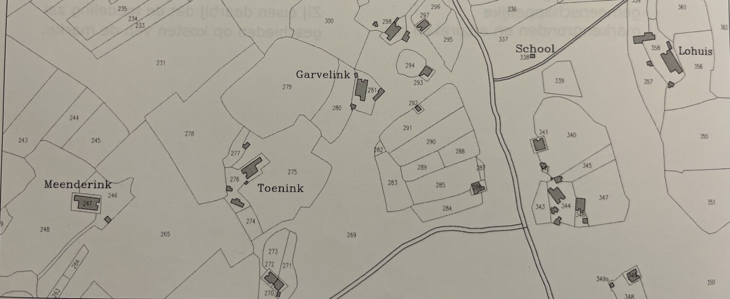 Tekst: BMS, Bijnamen in en rond Ootmarsum. H.J. Asma, Veldnamen in de gemeente Denekamp, 1991. Historisch boerderij-onderzoek in het richterambt Ootmarsum, 2013. Het markenboek van Agelo, 1645-1843). Dingeldein, De goederen van het Stift